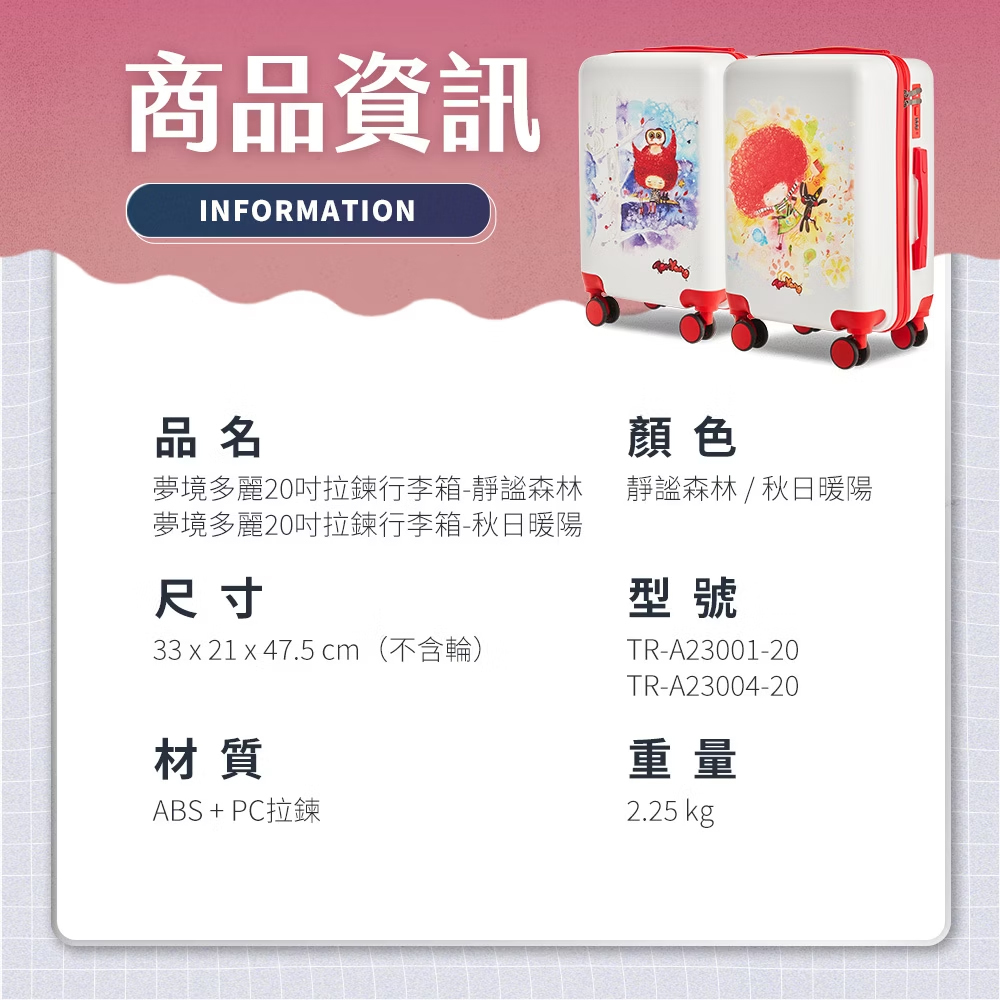 ▪️ 品名:夢境多麗20吋拉鍊行李箱